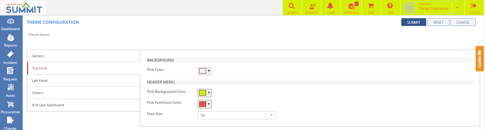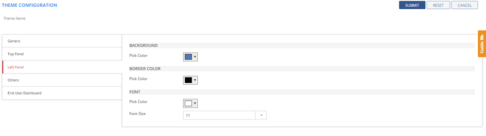 You can configure Themes by selecting the color, layout, font, and font size as per your preference. You can apply the configured theme to change the appearance of the Application.