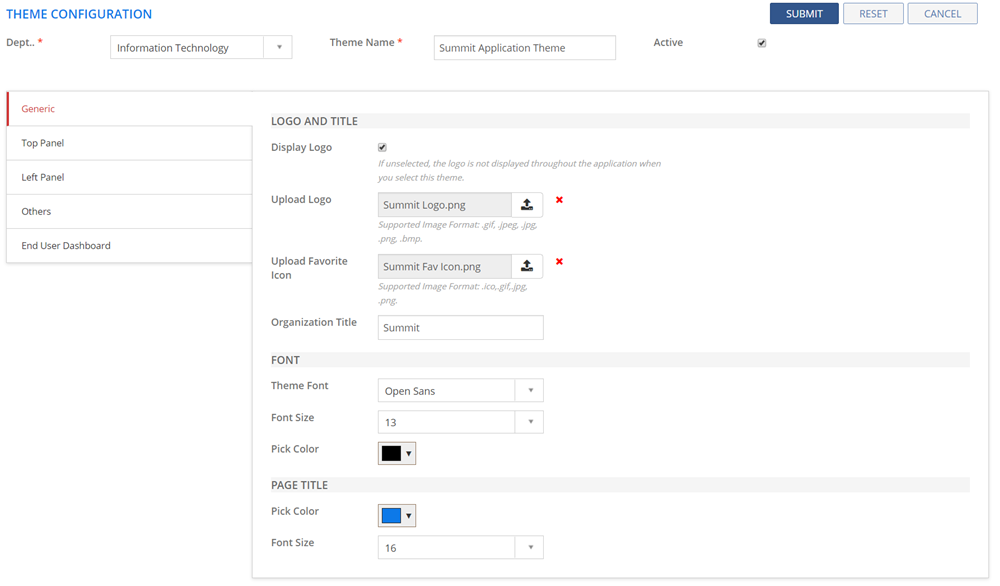 | Upload Favorite Icon | Upload a favorite icon that you want to be displayed across the application. The supported image formats are .ico,.gif,.jpg,.png. |